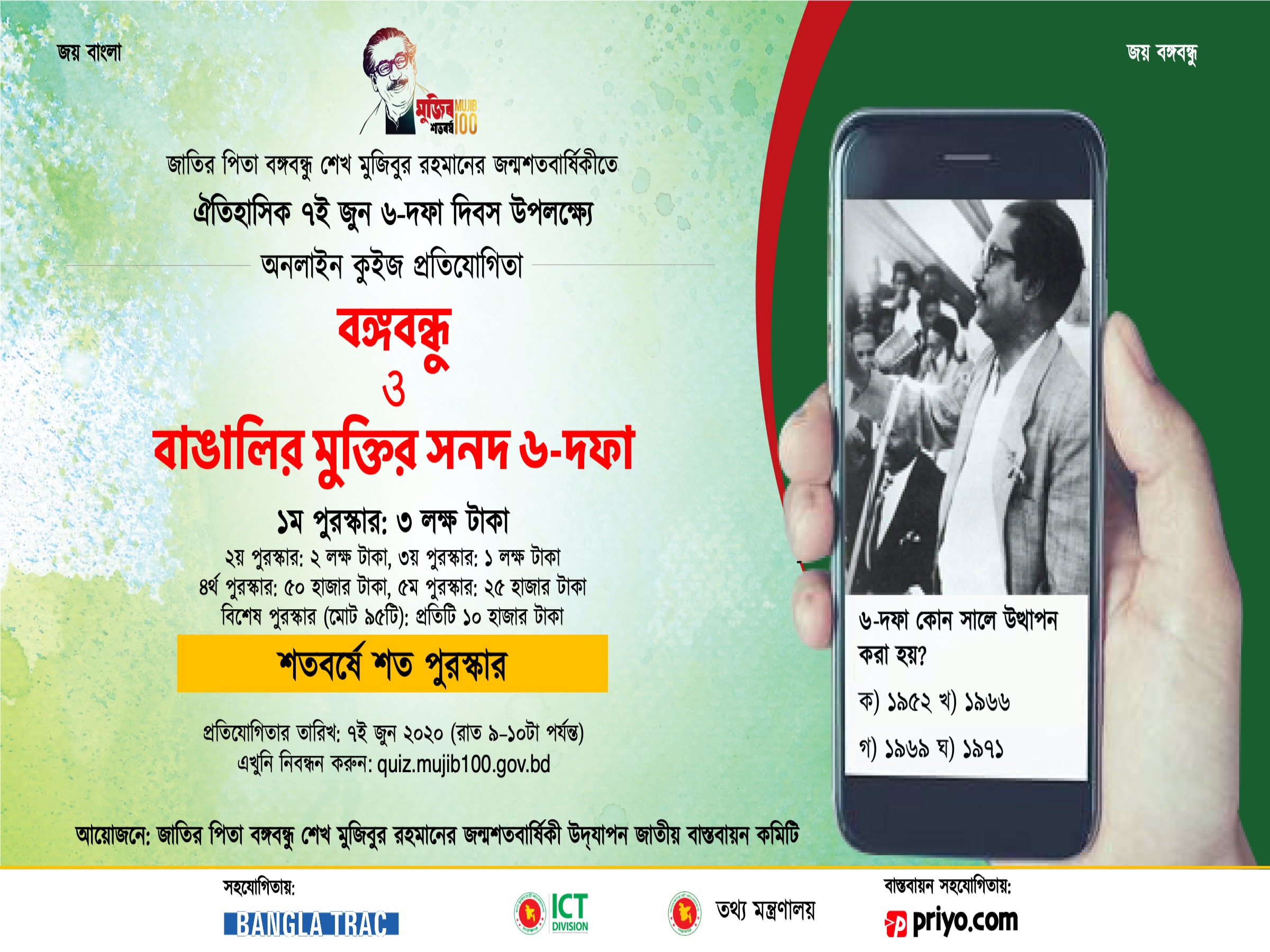 ঐতিহাসিক ৭ই জুন - ছয় দফা দিবস উপলক্ষ্যে অনলাইন কুইজ প্রতিযোগিতা
